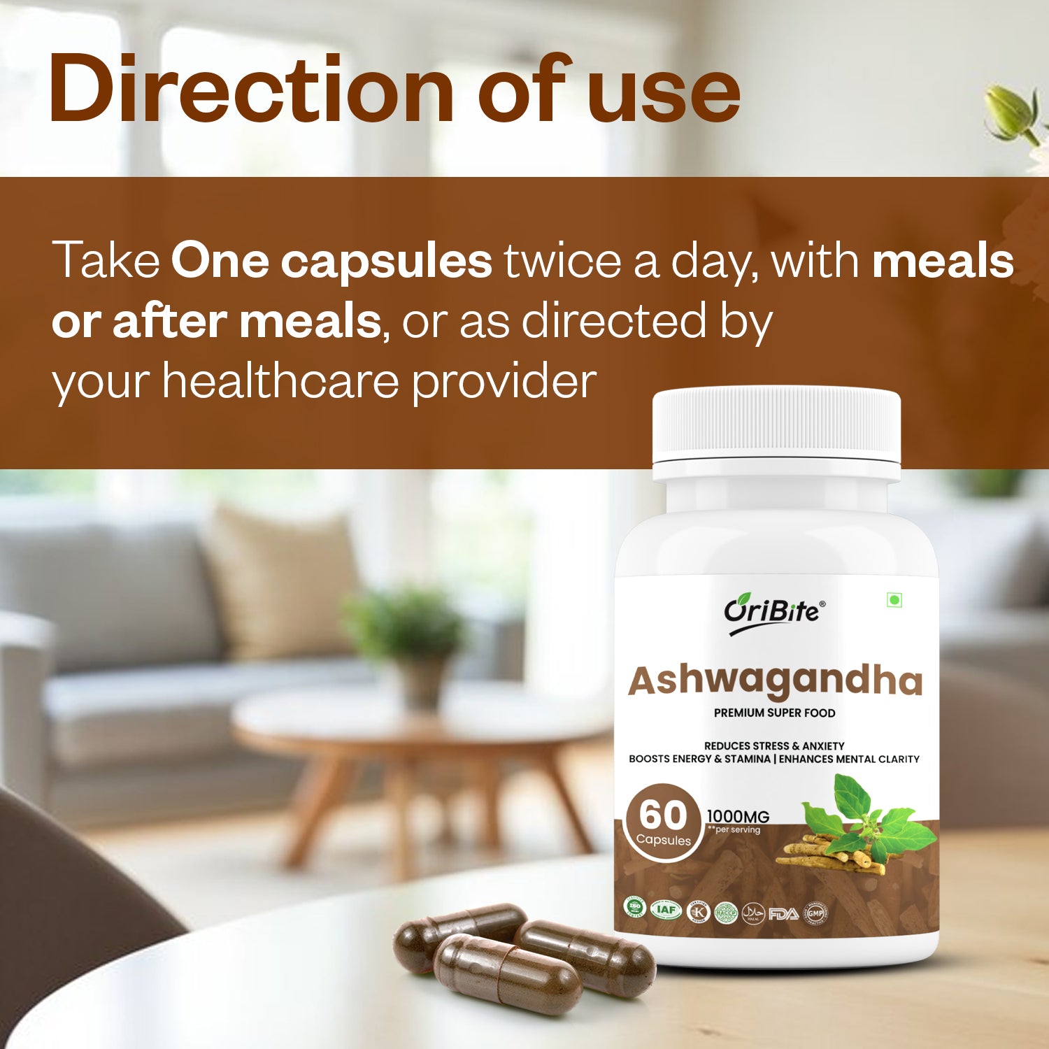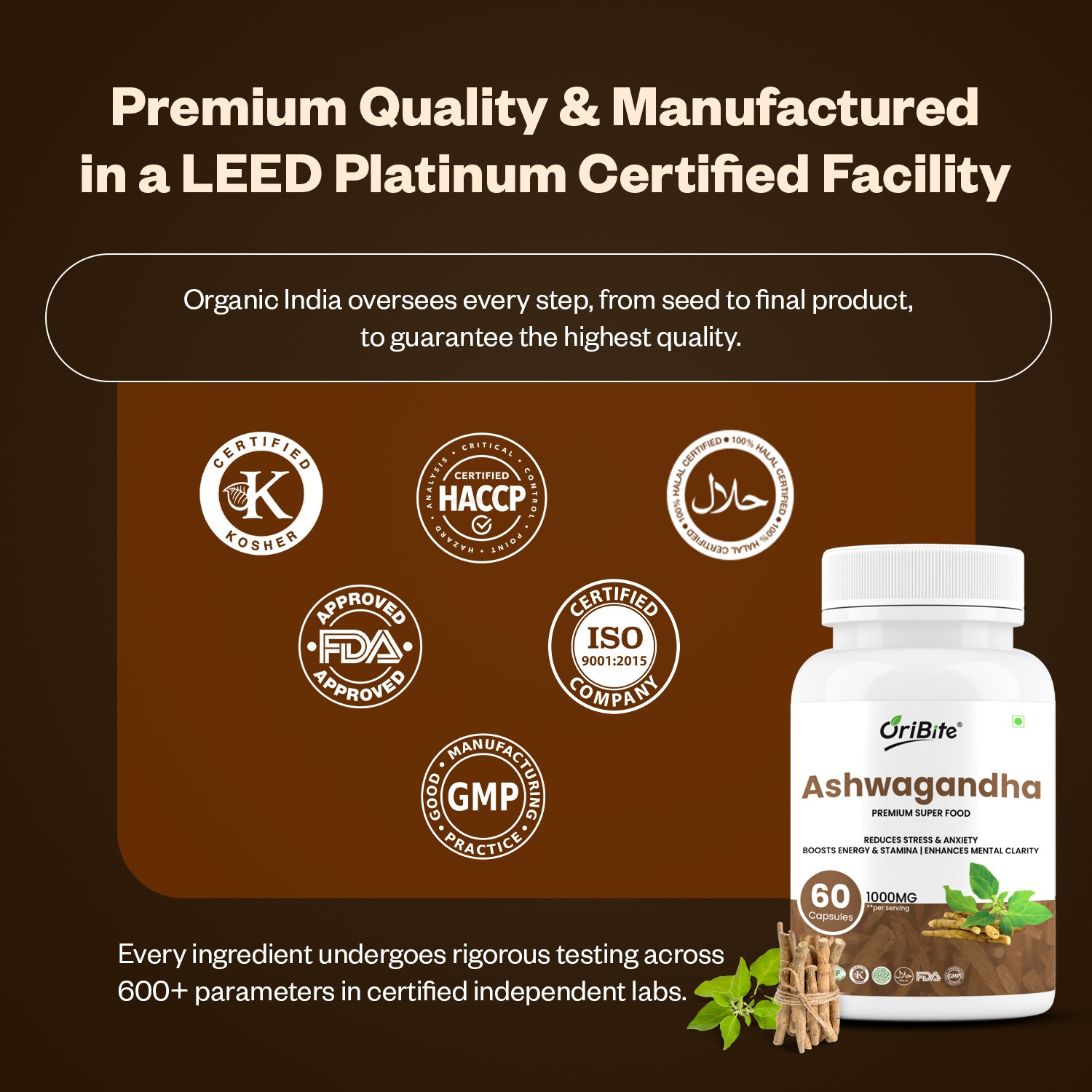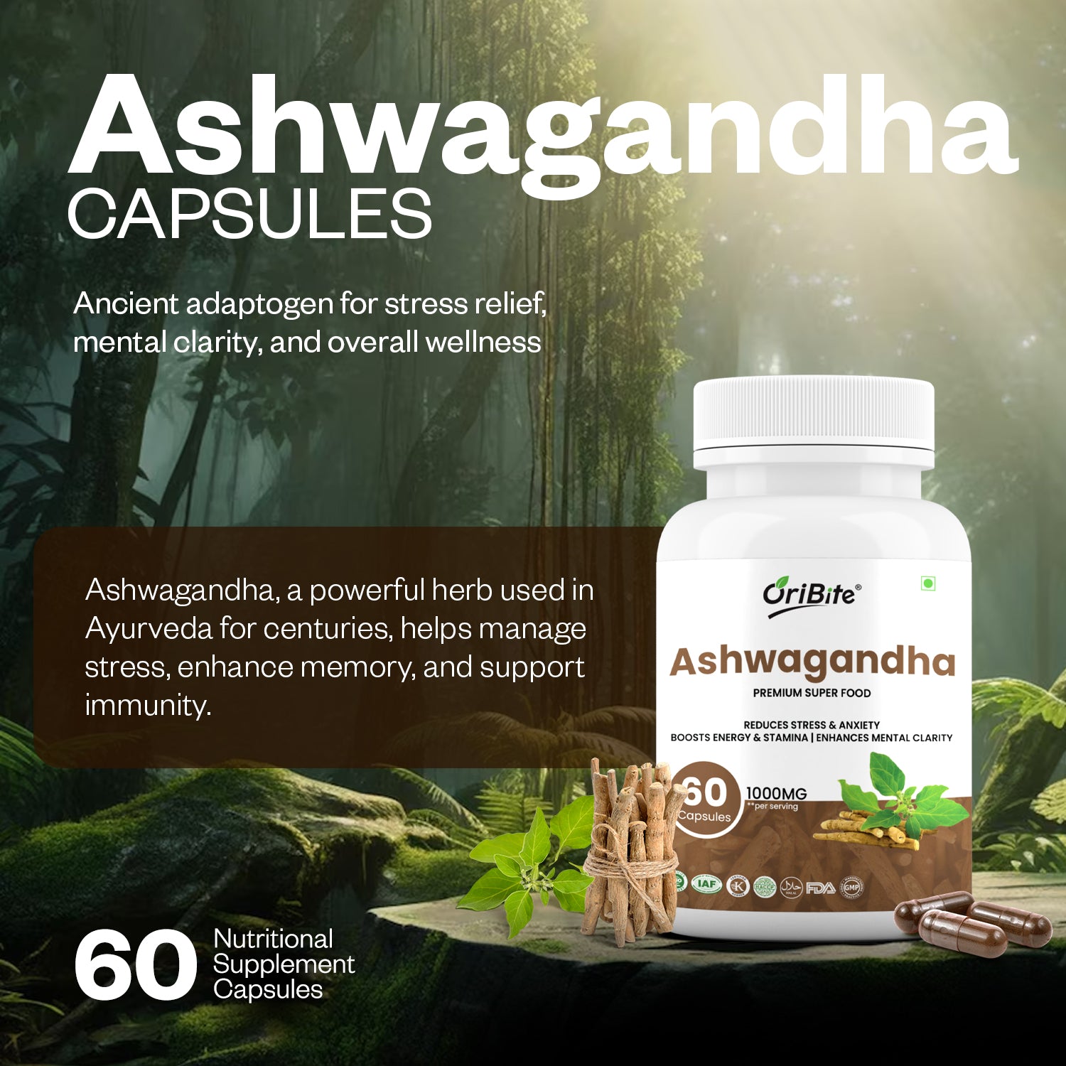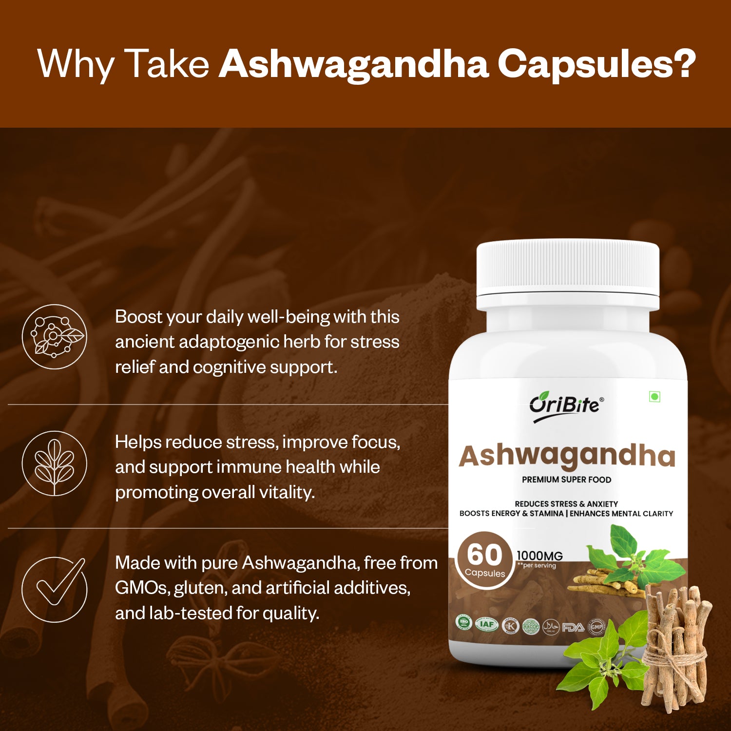 Oribite Ashwagandha Capsule | Helps in Stress Relief Cognition Immunity Boost & Sleep Management | 60 Tablets