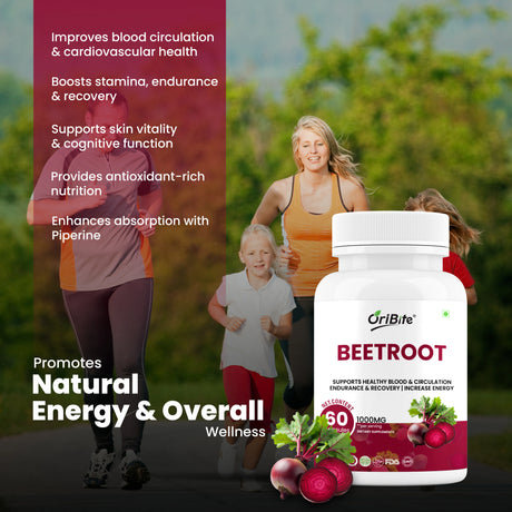 Take charge of your health the natural way with OriBite Beetroot Capsules. They are your daily partner for healthy circulation, endurance, and energy.