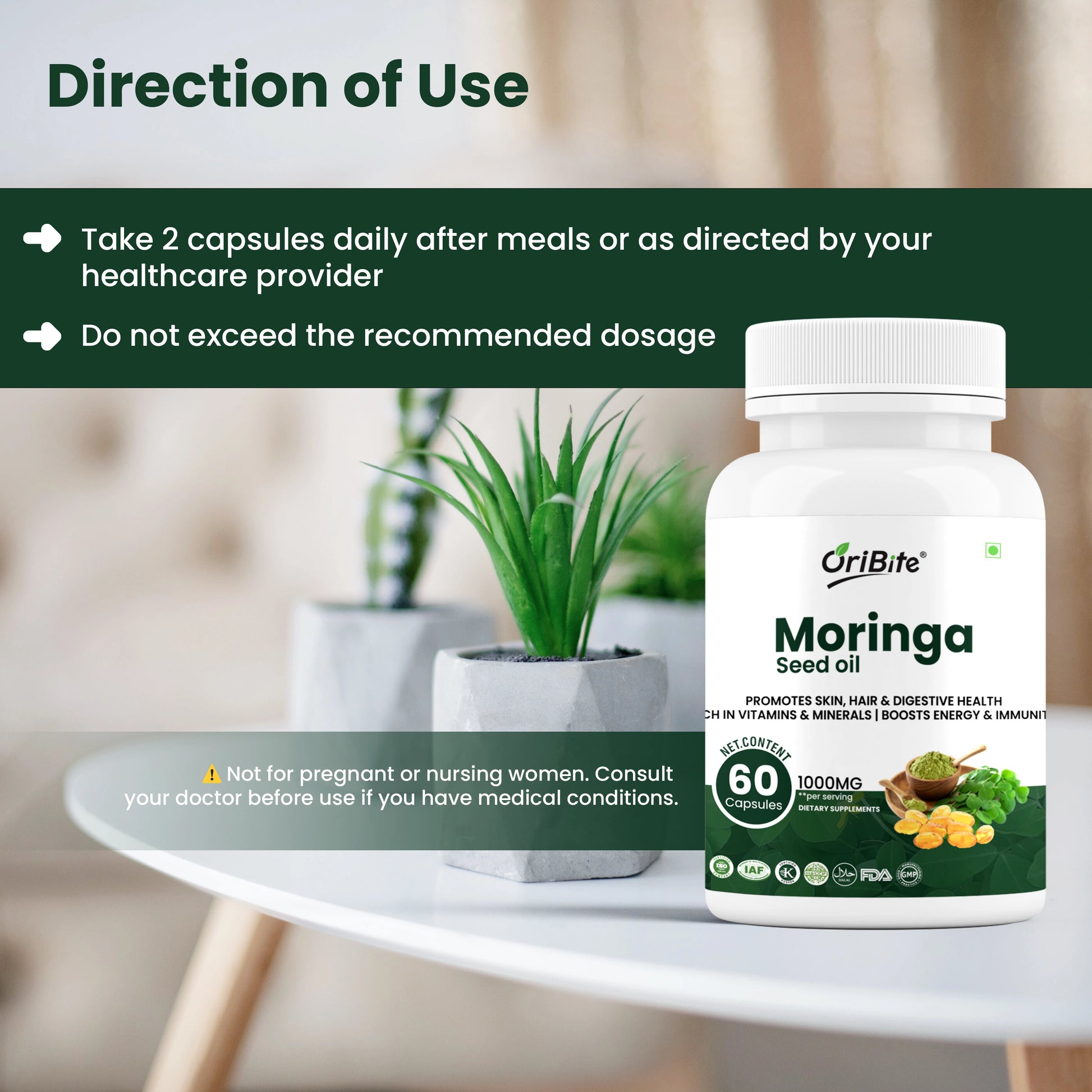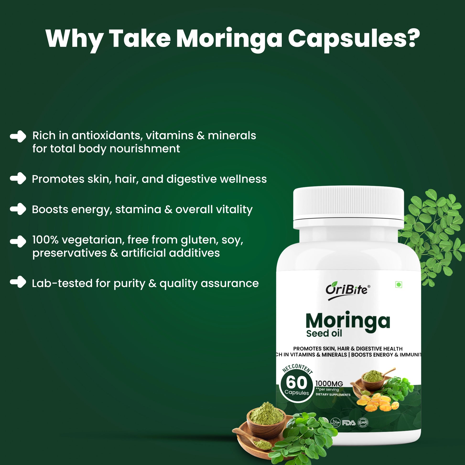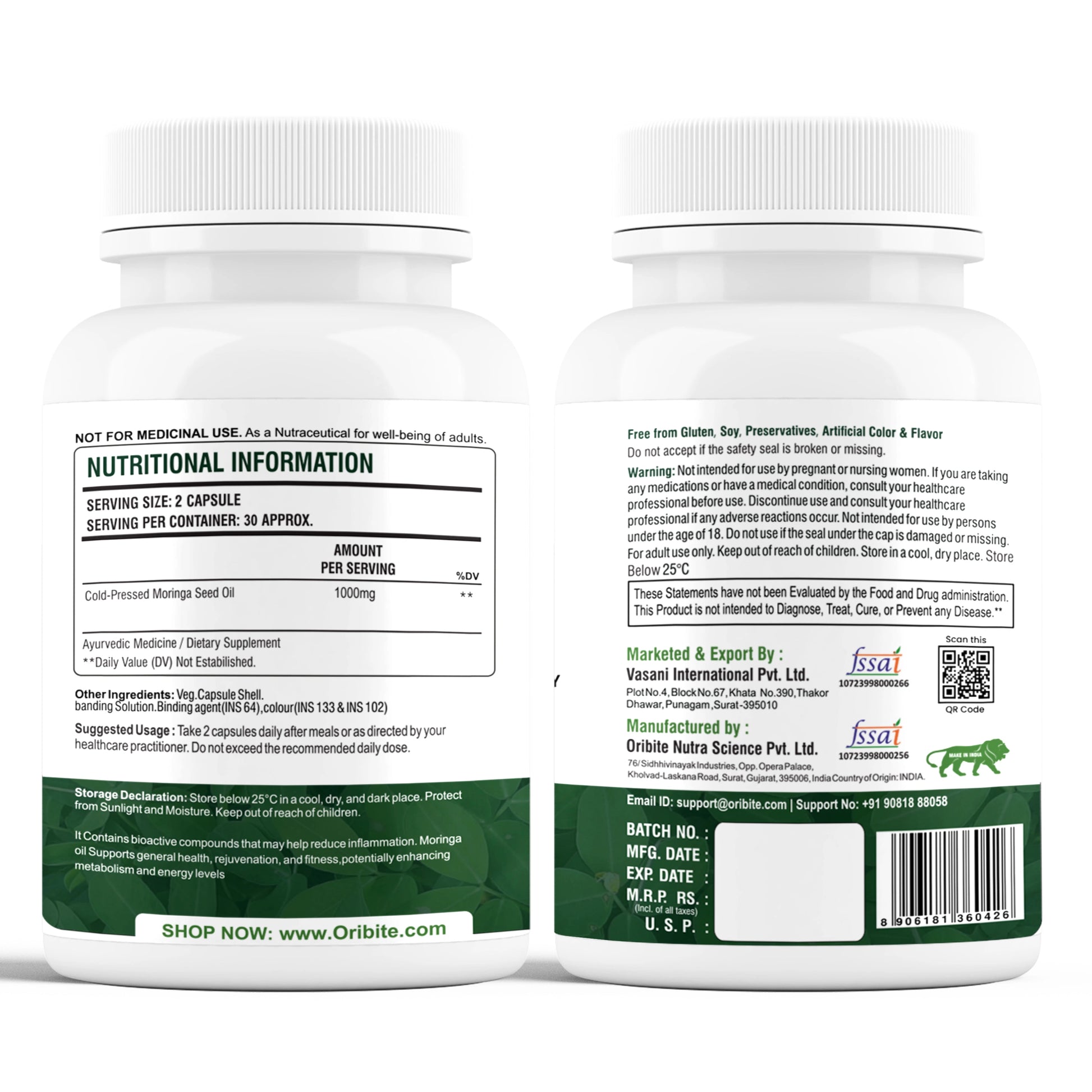 Oribite Moringa Seed Oil 1000mg – 60 Capsules | Cold-Pressed & Pure Superfood Supplement | Supports Skin, Hair, Digestion, Energy & Immunity | Rich in Vitamins & Antioxidants | Non-GMO, Gluten Free