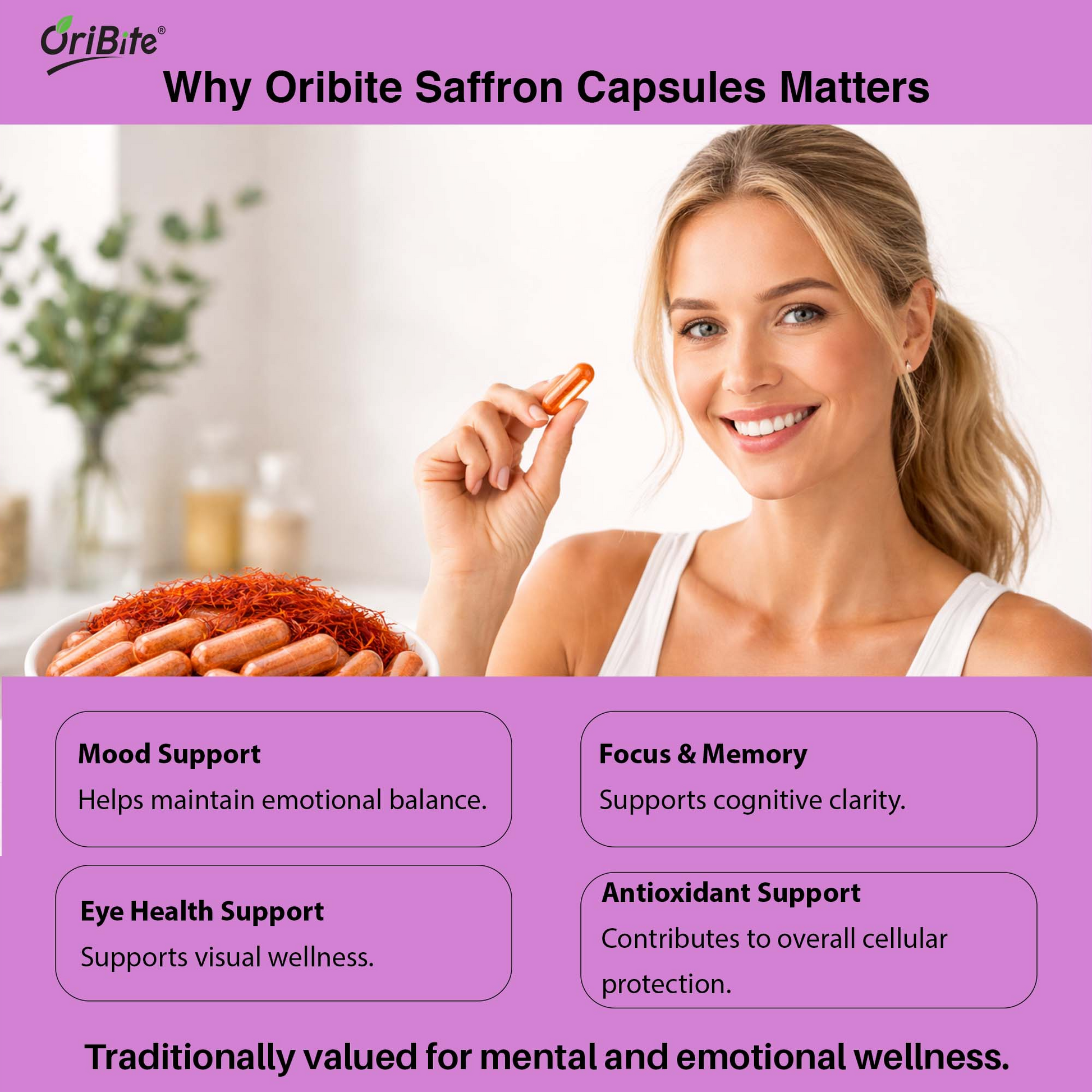 ORIBITE Saffron Capsules – your daily natural supplement for mood, immunity, and overall wellness in India.
